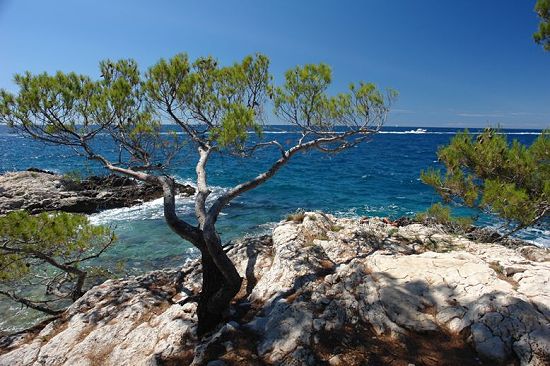 Forest Park Golden Cape is 52.4ha hlarge , enjoys more legal protection since 1948. year, because, as stated in the explanation then, "represents the beauty and ornament of the region." Today, park forest Zlatni Rt is still extremely rich in terms of vegetation. Meadow surrounded by natural forests and sown area in which are quite happy to stay. Natural forests makes holm-oak and black ash. With these two main types, the community still boasts oak, hornbeam, sage, bay leaves, laurustinus, holly, myrtle, mastic, cyclamen ... Each piece of this kind makes mosaic bajnog world: holm his dark cloak made of a kožastog leaves, which does not reject or winter, in summer makes the "thickest" shade, attracts the attention of pubescent unique shape of leaves, exposing her strawberry blossoms when all other vegetation is at rest - in the winter and their spring colors of flowers and fruits that are also found in the tree awakens a sleeping winter, enticing scent of laurel leaves, gentle kind of fascinated by her myrtle blossoms like snow flakes. They planted a six-pointed star of Himalayan cedar (Cedrus deodara), avenue of cypress (Cupressus sempervirens) and pine (Pinus pinea), formed meadows surrounded by Douglas firs and solitary exotic cypresses, there is a native bushes and holm oak (Quercus ilex) with Mediterranean elements. In this mosaic of woven and the kind of beauty that nature has not settled in this area, but it is the human hand is planted with the intention of: fragrant Douglas fir, refined cuisine, magnificent cedars, cypresses slender, branched cypresses, witness the Ice Age - and the inevitable ginkgo trees. Pine grows there are several kinds - Aleppo, Brutian, coastal, pine. Are valuable because of the handful of countries are imposing dimensions, and its thin needles and cones represent various mysterious natural architecture. In this mosaic of woven and the kind of beauty that nature has not settled in this area, but it is a human hand with the intention planted: six-pointed star of Himalayan cedar (Cedrus deodara), avenue of cypress (Cupressus sempervirens) and pine (Pinus pinea), formed meadows surrounded by Douglas firs and solitary exotic cypresses, there is a native bushes and holm oak (Quercus ilex) with Mediterranean elements, meals, witness the Ice Age - ginkgo. Visit the park forest recreation enthusiasts and active and healthy holiday experience will be unique touch with nature ... pleasant climate of the Istrian Peninsula, the scent of woods and meadows, the sound of the sea and the peace that gives these extraordinary oasis of vegetation allows fans of bike trails, rock climbing, jogging or long walk home and recreation throughout the year